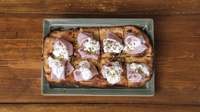 Baccalà mantecato su panella di ceci e salsa teriaky