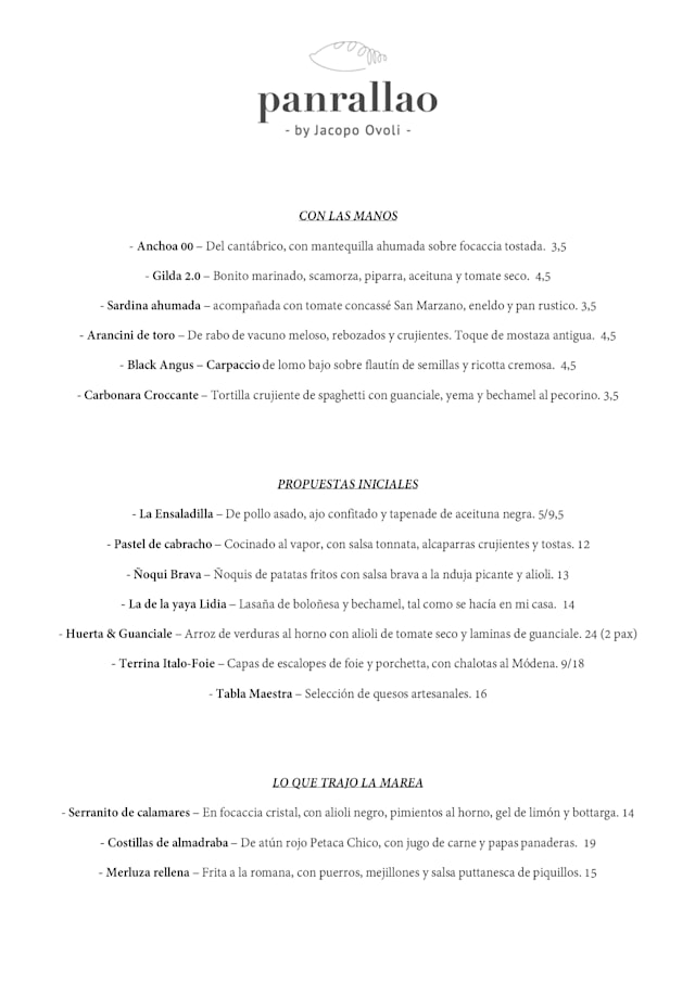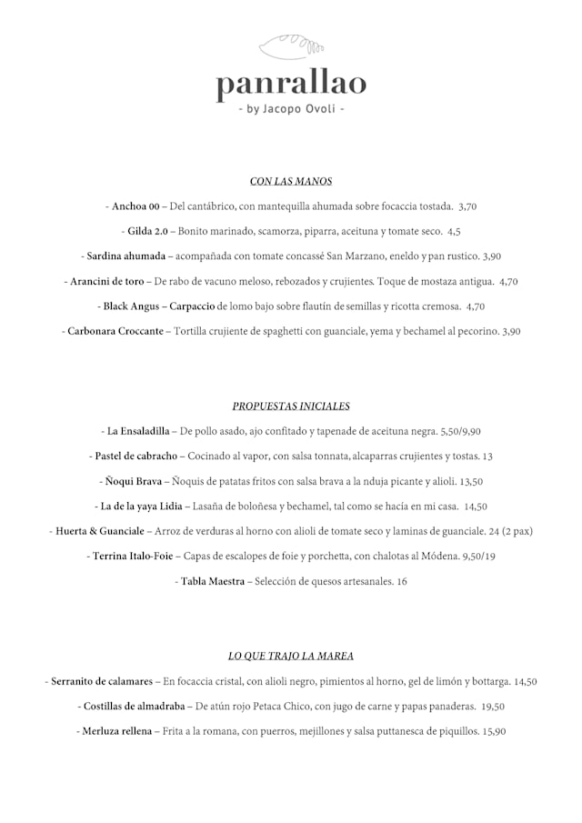 9.5/10We had the good fortune of arriving at Panrallao on our first night in Seville. On arrival we were met with welcoming smiles from well trained staff. The food here is excellent.Cooked to perfection. It is obvious that the Chef here is a rising talent. Not often do you look at a menu & see such a diverse original menu . The fresh tuna meatballs in a delicious sauce have to be experienced.10/10 Wine is well priced at around €20 for a good quality bottle . I would urge everyone to sample the menu here before the Chef upgrades to larger premises & prices rocket too . We regularly eat out in London back home. Its been a long time since we have found food this good on our travels with excellent service too. Thankyou 10/10