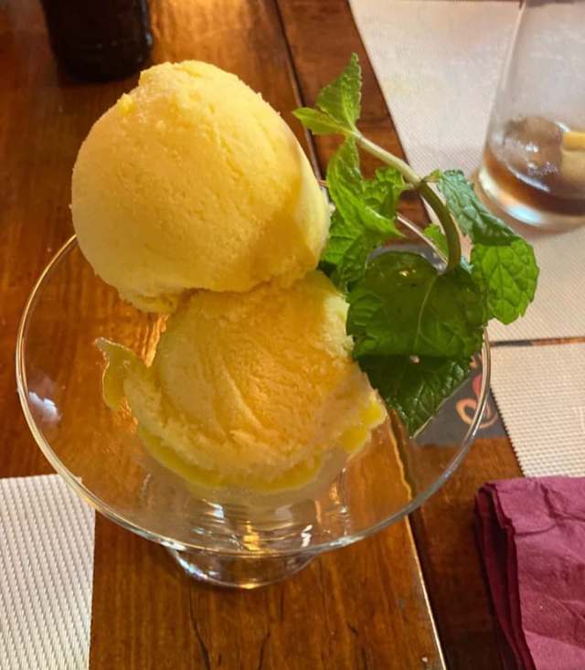 - Cordero preparado con almendras, crema fresca, mango y mantequilla