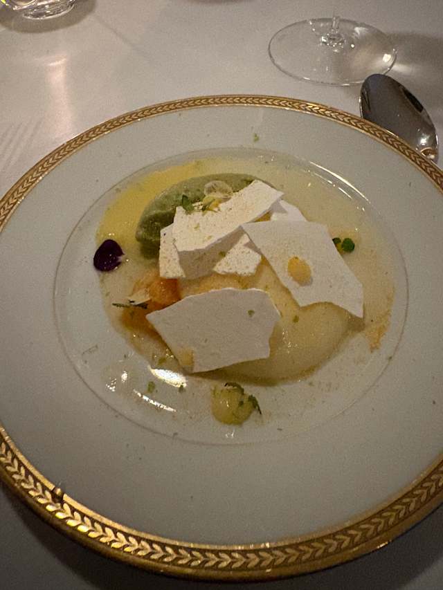 - Mandarine à la cardamome, crème de bergamote, sorbet à la mélisse citronnée