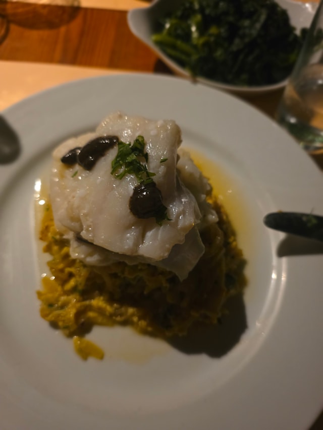 8.5/10Visited as a couple. Ordered the “Bacalhau fresco escalfado sobre à Brás com emulsao de azeitona preta” which is fresh cod fillet, which is braised in olive oil and sits on top of super thin potato fries with onion and parsley! An amazing plate. The waiter, excellent in his field, described most of the dishes for us which made us want to take all, if possible. Very polite, very attentive, big smile knew how to do his job! pleasant surprise, the final price - which cannot of course be considered as cheap, its excellent - given the circumstances. Will come again!