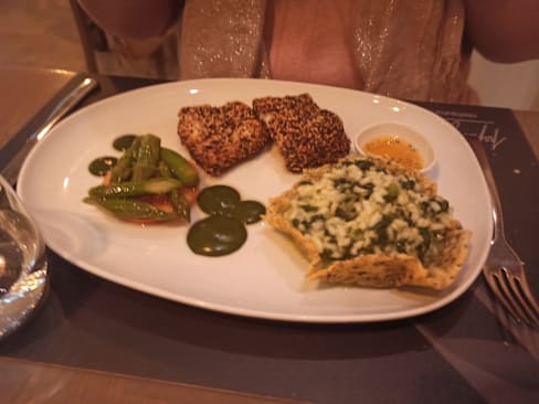 8/10Good food. Nothing to write home about but honest and well done. Above average but not excellent. What excels is the service. Very very good. Excellent staff. Well trained. Really thumbs up. Good mood and nice place.
