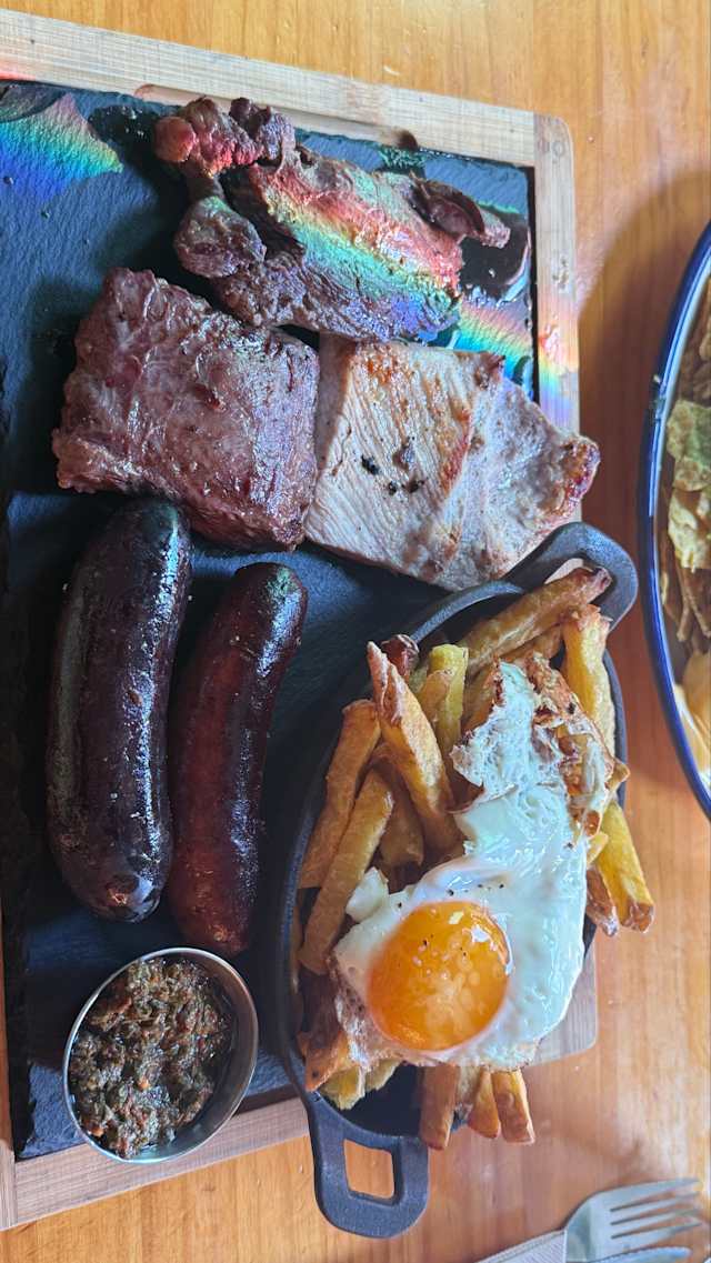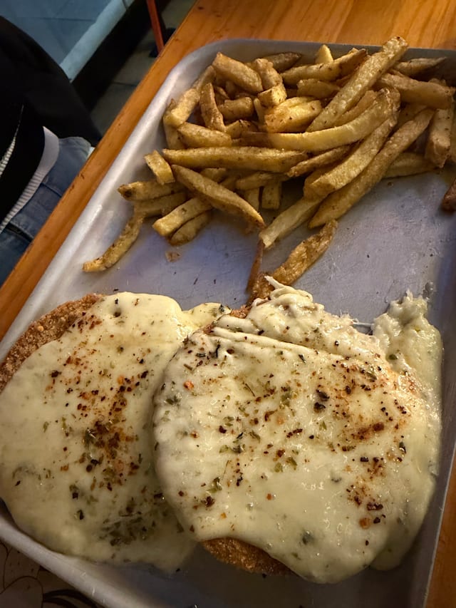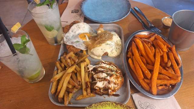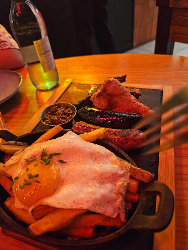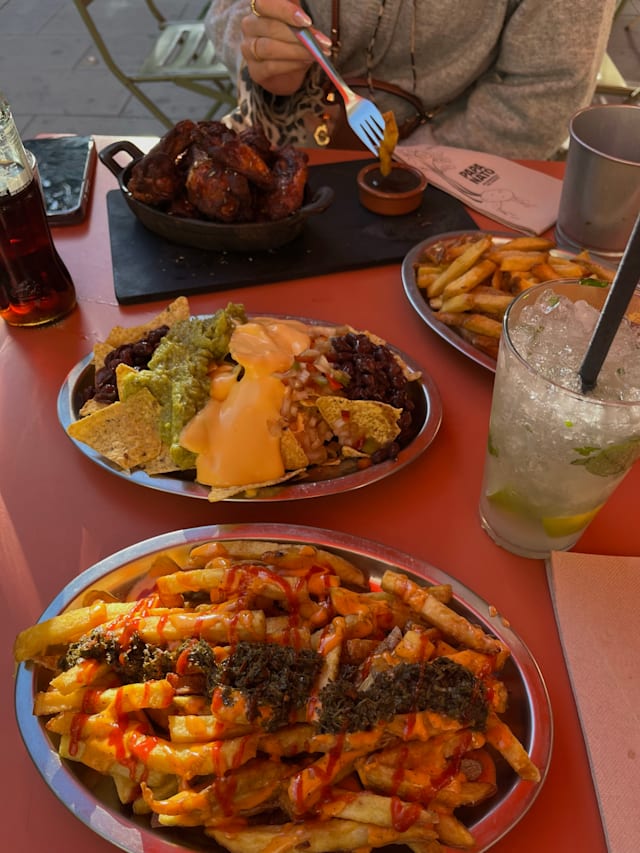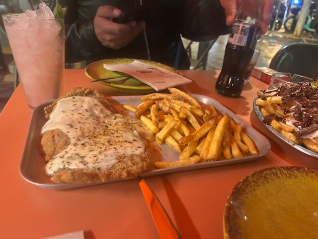 8/10slow service on the terrace on a Sunday, only 2 servers for lots of tables, forgotten beers, etc. the loaded bbq fries were great, the lomito sándwich was tasty, but the fried tortilla should not exist, it was disgusting even with the sauces. with the discount, it's a good deal.