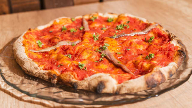 Pomodoro san marzano DOP, alici del cantabrico, aglio rosso di nubia (presidio slow food), olio evo, peperoncino e origano