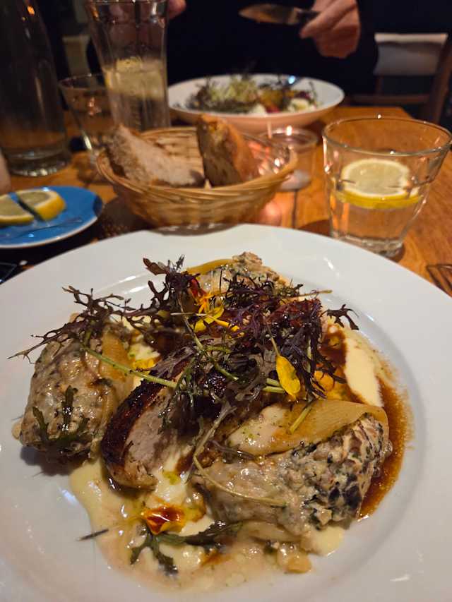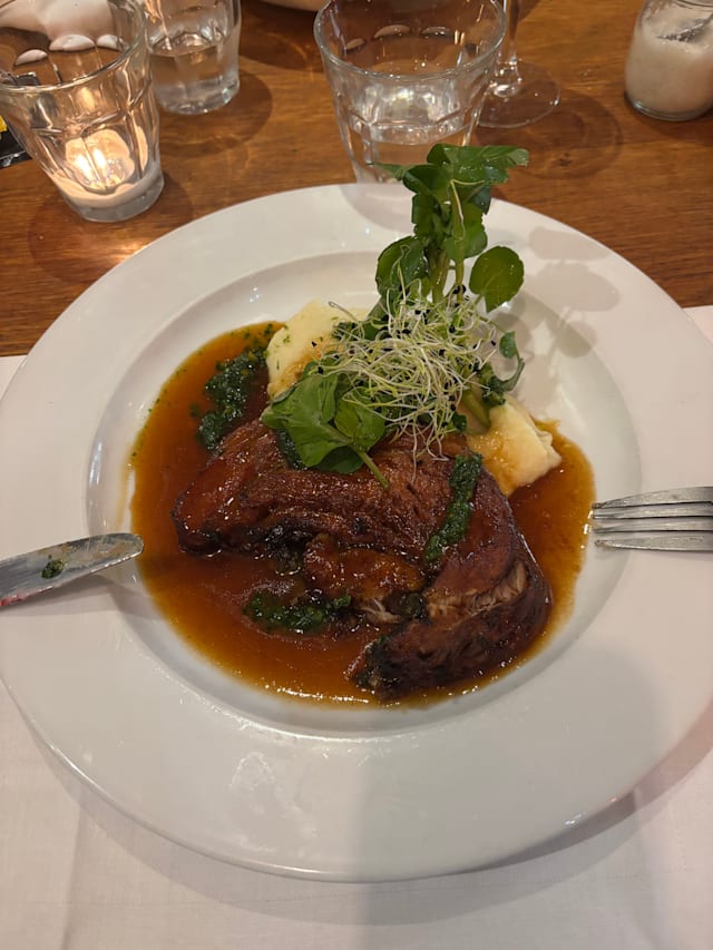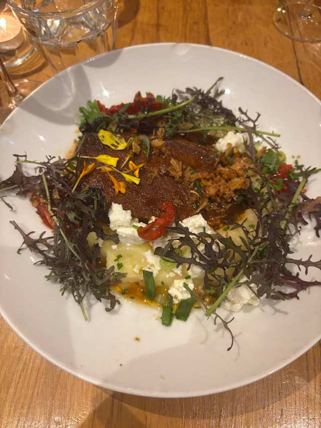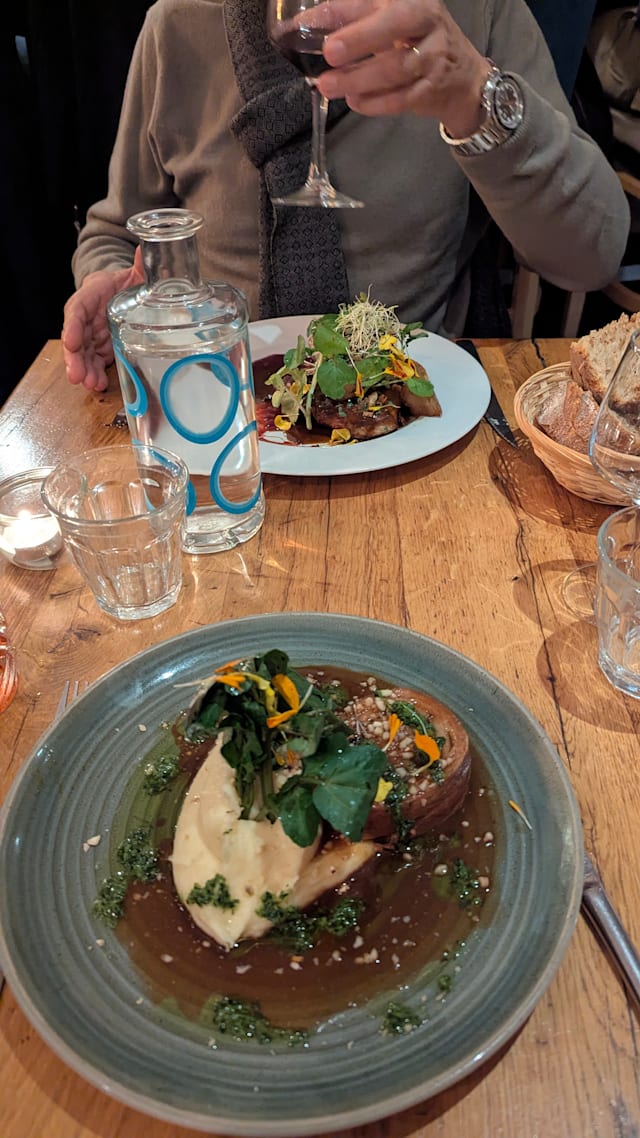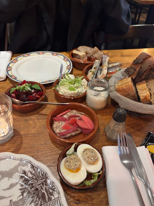 10/10For starters I had a great selection of small plates - Prawns, Beetroot & Apple Salad, Pork Taurine, Egg Mayonnaise, Potato Salad and Coleslaw ……. All were delicious. For my main course I had the sirloin steak with Jerusalem Artichokes and a tasty sauce. The steak was cooked very much to my liking. To finish I had a selection of cheese. The service was good and I’d certainly recommend this restaurant. I had a reservation for 19:00 and I reckon that it was a wise move to make the reservation because it was very busy when I was leaving.