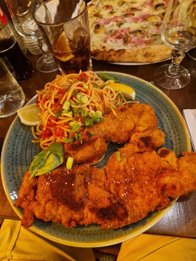 - Base tomate, mozzarella fior di latte, spianata piccante (porc), poivrons, oignons rouges, œuf