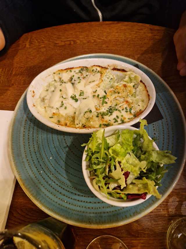 - Pain de mie, emmental, comté, jambon blanc, b échamel, salade mêlée, frites