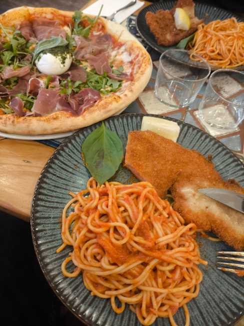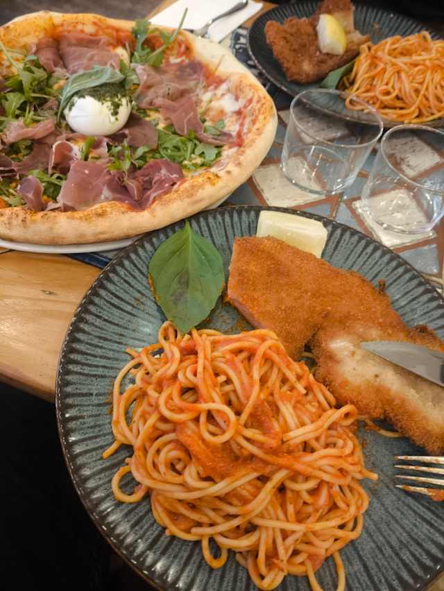 8.5/10Very fast service. The dishes were served within minutes. The Parma pizza was very good. The schnitzel was average