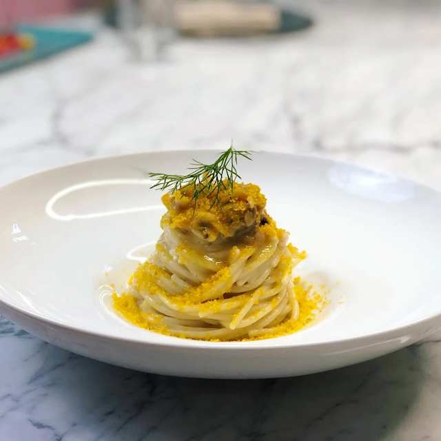 - Riso ricciola, ripieno piccante di capasanta e cipollotto