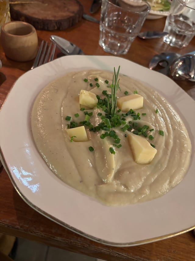 7/10We went to this restaurant to meet a friend. We ordered the starter what was ok. The maincourse was a small pan stew ( 20€per person so 60€ ) what was a very small portion for 3 adults. The cheese dessert was covered with salad en 3 pieces of cheese and panacotta was thin and made 3 days ago. Was definitely not fresh( the date was written on it. So a lot of money for what it was. Not recommanded. .