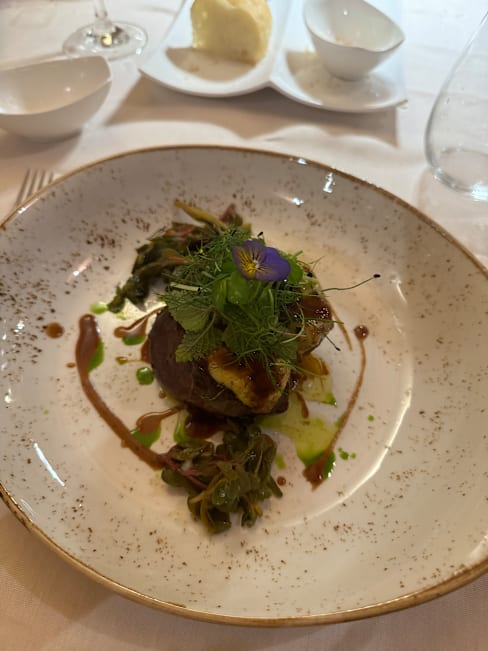 9/10Lovely and romantic setting. A great attention to detail. Excellent service with a very interesting visit to the wine cellar, with great recommendations from the Maître D. Highly recommended experience!