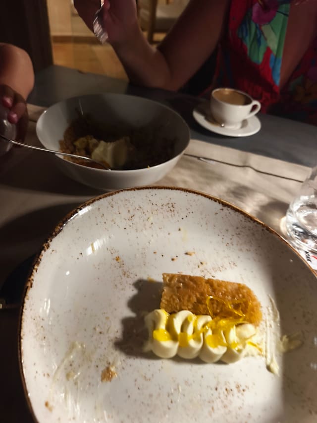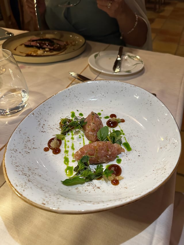 7.5/10We were looking forward to this meal after reading the reviews but came away with an overall feeling of disappointment. The food was lovely, but it was spoiled by the somewhat chaotic service, no bread until after the starter and a struggle to get wine after the lovely aperitif. We wanted a wine arrangement with our food and hadn’t realised it was only offered with the tasting menu, so we were both given the same Vermentino even though our dishes were very different. The situation was rescued by Antonio who suggested wines with our main courses. Dessert was also a problem, my husband didn’t get one although he ordered one (I was going to share it) but I got one, having been persuaded by the waiter that I would like it, and I did, very much. He was not so happy. A lovely setting and really good food. If the service had been less careless it could have been a great meal and we would have returned, but instead we went back to La Mola and enjoyed the exceptional food and service there a second time.