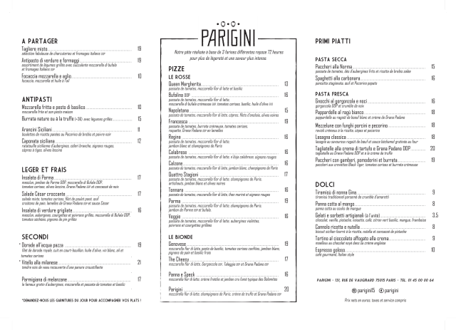 10/10The food was really good, the ambiance was nice and relaxed and the server was very accommodating. If you are craving Italian food in Paris, then this is the place to go.