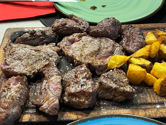 5.5/10A very disappointing experience. The staff/owners were very nice and obliging. The main course of a Tomahawk steak was pretty poor, I did ask if the steak was Argentine and they assured me it was , if it was then it was rough and tough, taste was good but tough. I'm not sure but I think we were Overcharged on the steak, why? because it was a fixed price on the menu, but when the bill arrived it showed 10 euros more because it was over 1kg, we had no way of proving this but I'm guessing the extra charge was to cover the 30% discount we were awarded from The Fork. Apart from that, we had the same plates and cutlery throughout the starter and main course. The Restaurant was cold. The toilets were not clean.