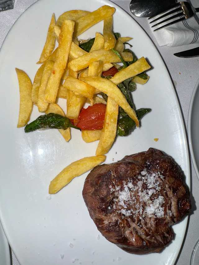3.5/10The first indication that the evening would not go as planned was they did not have our reservation made on The Fork? The service was very rushed even though the restaurant was not full. As we were seated in tables that were too close, we noticed the captain was very pushy to everyone. They were also out of the day’s special and we were early in the evening. For starters we had artichoke and asparagus. Both were served lukewarm warm. The asparagus was 23 euros for three and they were over cooked to the point of tasteless mush. Very disappointing. We had to pour our own water and wine. We would not recommend nor would we return.