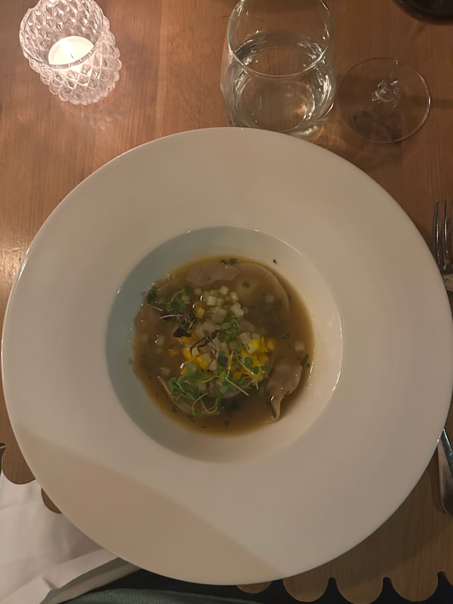 We visited this wonderful restaurant as a group of 16 people, and the experience could not have been better. In advance of our visit, I had a great dialogue with the head chef, who kindly offered to design a special three-course menu with drinks included – wine, beer, soft drinks, and coffee. This personal touch already gave us high expectations, and they were more than fulfilled. The evening itself was a delight from start to finish. We were served a delicious three-course menu with coffee accompanying the dessert, and every dish was beautifully prepared and full of flavor. The wine pairing was excellent, and everything felt thoughtfully selected. The service was outstanding – warm, attentive, and genuinely friendly, which made us feel truly welcome throughout the evening. The atmosphere in the restaurant was another highlight: cozy, authentic interiors combined with great acoustics, making it easy for our group to enjoy conversations without any difficulty. Altogether, it was a memor