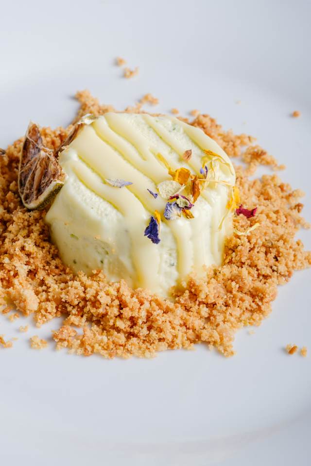 - Risotto con crema di asparagi, le sue punte, tartare di gambero rosso e crumble di mandorle