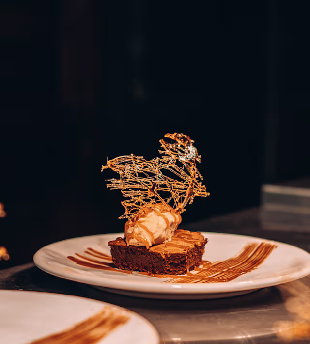- Wagyu japonês A5 (200g) com linguine de massa fresca, molho de cebola caramelizada trufado e crocante de queijo