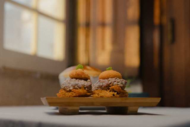 - Tártaro de novilho com maionese fumada, crocante de batata e gema frita