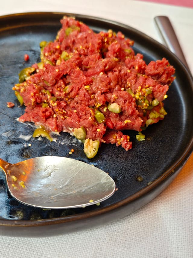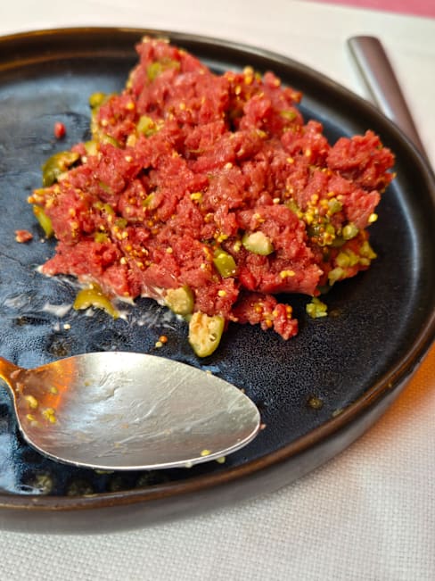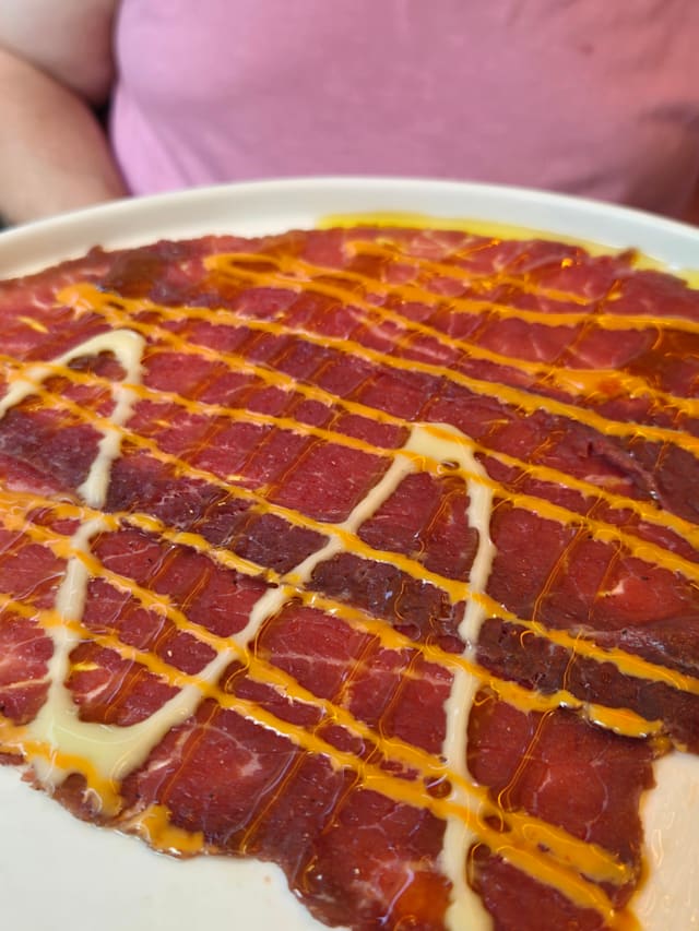 10/10Highly recommend. We started with Kaffir Carpaccio, English (I think) beef tartare. Both were probably the best of each I've ever had. The host, Ali, helped us choose our steak. Trust his guidance. We requested medium rare. It was cooked perfectly. The service was great. Good location. The Aperol Spritz I had was so, so good!