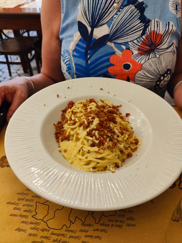 10/10It's always the great cibo romano and the excellent service at Pasta al Volo! Danielle was our most patient, kind, generous, attentive, and over-all excellent host all-throughout our stay for lunch! We ordered all their main dishes---and the favorite, as always, is the very richly creamy carbonara, generously dashed with guanciale--in authentic roman style! Never miss their tiramisu for dessert! Looking forward to our next visit!