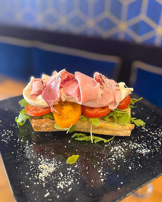 - Mozzarella, jambon blanc à la truffe d’été et tomates confites