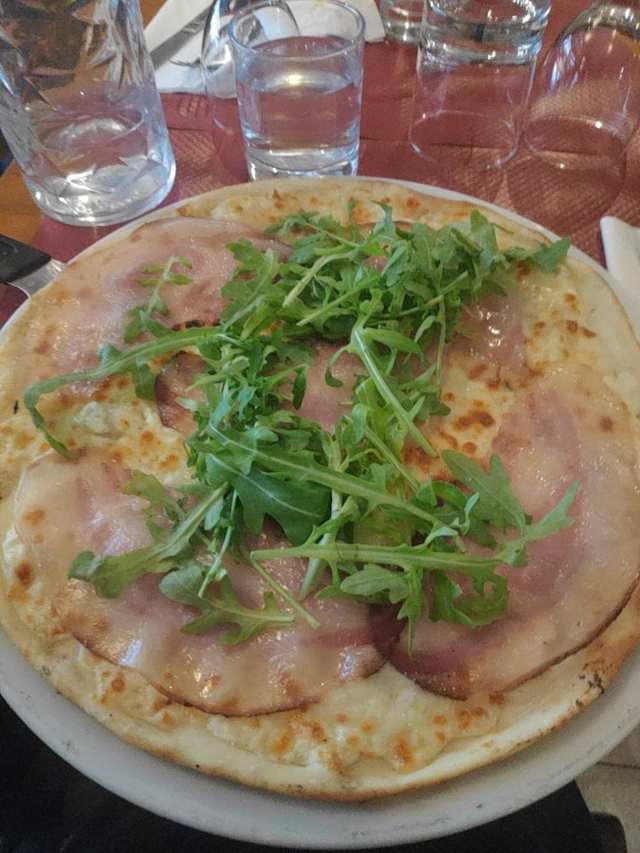 5/10We had 4 pizzas; calzone, 2 rocket mushroom and a gorgonzola e mele. The food is not bad but not super either We ordered desserts too: ice cream and 2 chocolate mousses (too dry) Service was a bit slow