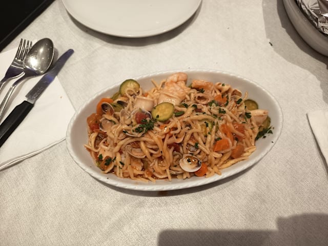 9.5/10The homemade pasta was absolutely delicious and the plates very abundant (something that my teens especially enjoyed). We had the mussles for starters and my husband and I shared a pasta with speck that was amazing. Despite having shared the platter it was the perfect amount. My teens each had their own plate of spaguetti carbonara and trofie al pesto. It is not a fancy place but definitely worth visiting .