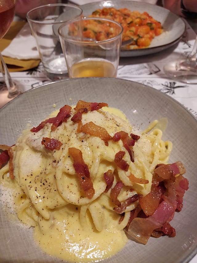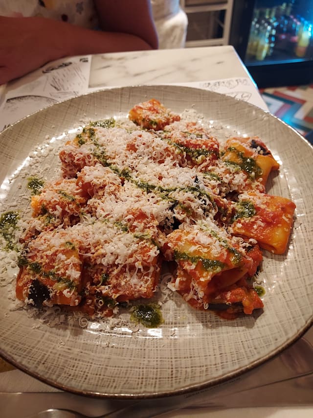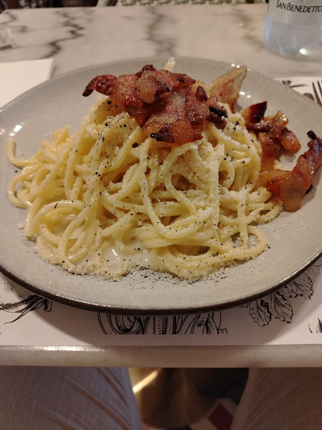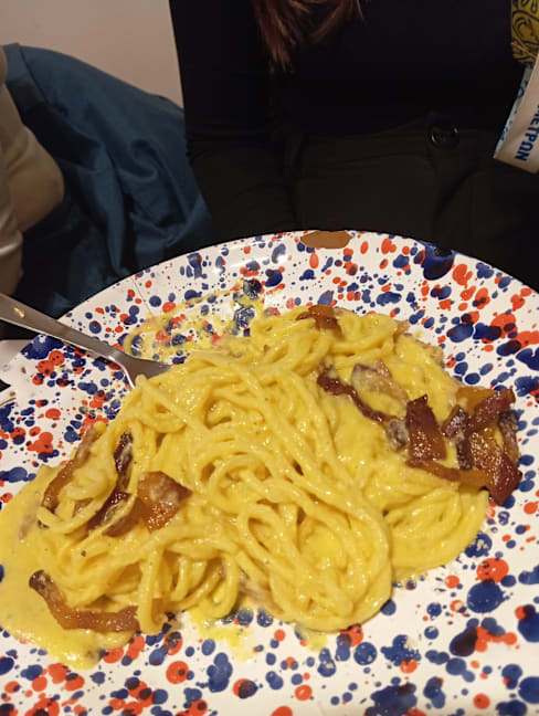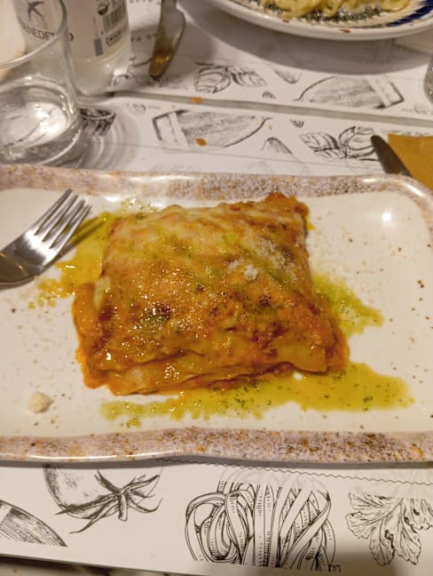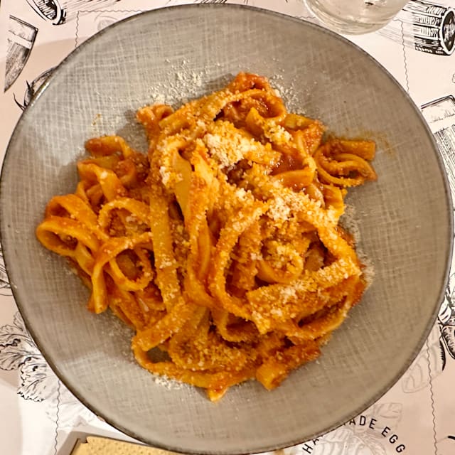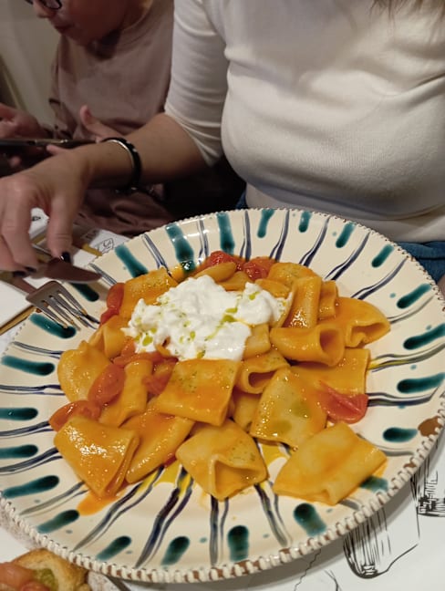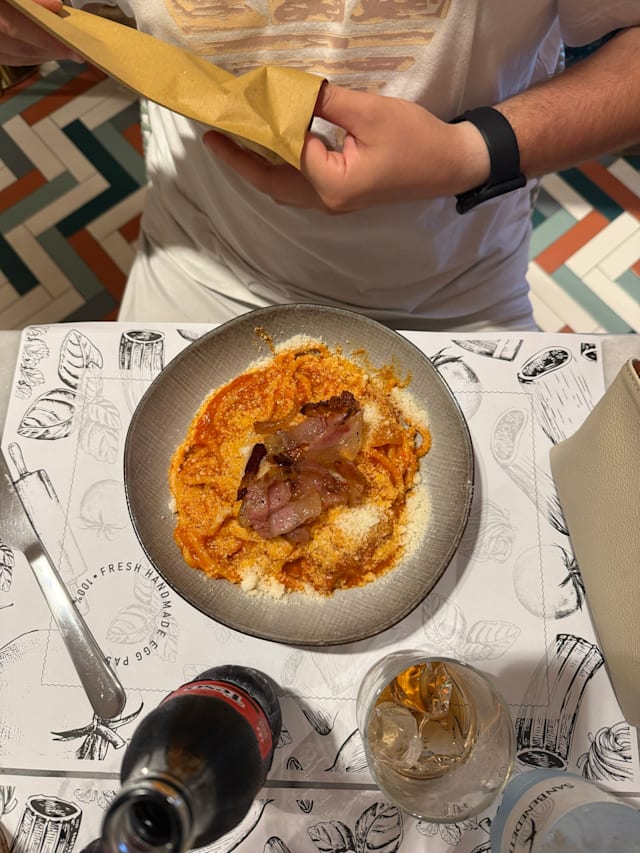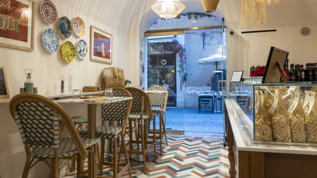 10/10The manager (owner?) / our server was wonderful, explaining and suggesting menu options, making conversation and taking pictures of us! A delightful experience. It’s a new (Nov 2024) restaurant, modern, upbeat decor and very clean. High top, indoor only seating. It does both dine in and takeaway, to what we observed to be a generally younger clientele. As retiree tourists we appeared to be the oldest patrons that evening, but she and the fresh ingredient delicious pasta dishes made for a delightful last dinner in Rome for us! Portions were generous, and prices very reasonable (even more so with a Fork 20% discount!).