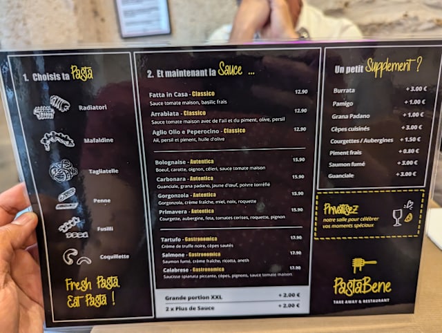 If you plan to eat at PASTABENE, the average price should be around €15. The average price is calculated based on appetizer/entrée or entrée/dessert, excluding drinks. Prices have been provided by the restaurant.