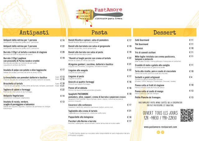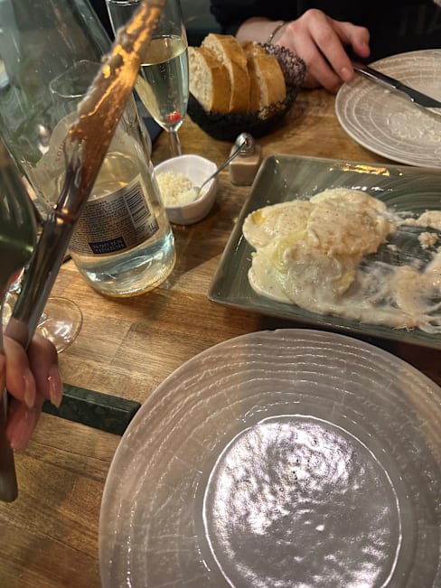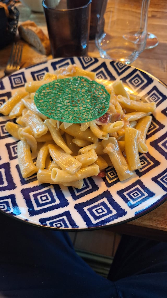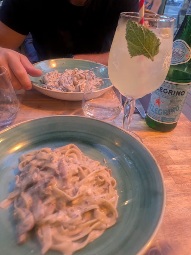 Myself and my partner went here for our last meal in Paris before heading home. We ordered our meals and asked for tap water for the table, I had to ask 3 times to receive the two water? Our meals arrived, my partner got his meal first and I had to wait another 5 mins for mine? My partners meal (a clam pasta) was very nice however my meal (carbonara) arrived luke warm and extremely salty. I wish I had read other reviews before ordering as others have said similar about the carbonara. I told the waitress and she took my meal back to the kitchen presumably to be warmed up. I waited a further 15 mins for my meal by which time my partner had already finished so I had to eat alone. If you’re planning on visiting here, go elsewhere