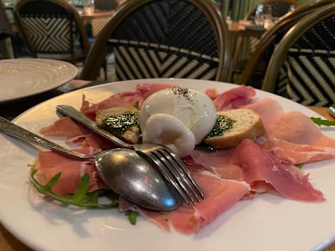 9/10We started with a starter, burrata with Parma ham. Both the burrata and the ham was delicious and nicely presented. Service was prompt and kind. We ordered a bottle of Pinot Grigio and then four pasta plates: spaghetti pastamore, Paccheri alla Norma e Burrata and Gniocchi ai quattro formaggio. The pasta was perfectly al dante, and each meal was created with fantasy, well presented and were unique. Service was attentive and prompt. The only downside is that the terrace (winter) is quite packed.