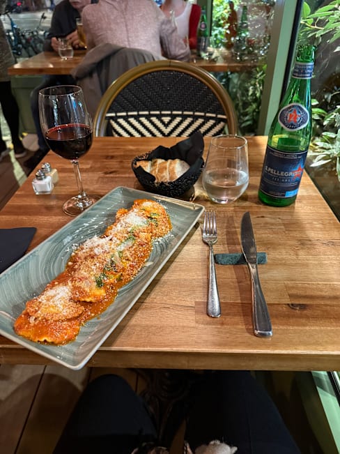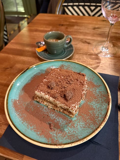 5.5/10I had ravioli with porcini mushrooms for my main course, ravioli themselves were dry, felt like undercooked, the filling was tasteless, sauce was too thick. Tiramisu was worst I’ve ever had - ladyfingers must have been soaked in Marsala (or whatever dessert wine they used) for too long, it was very watery. My husband’s choices were a lot better - main (seafood pasta) was good, so was his dessert (mango panacotta).