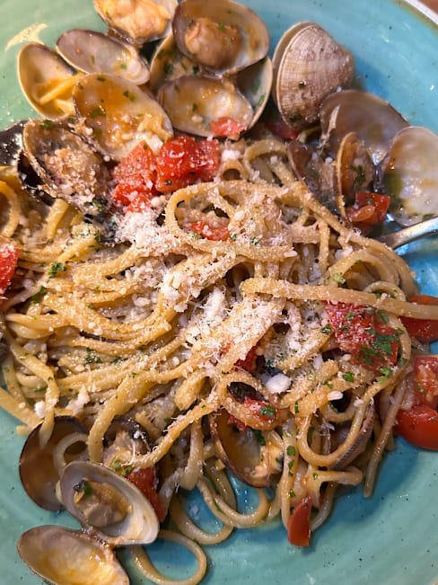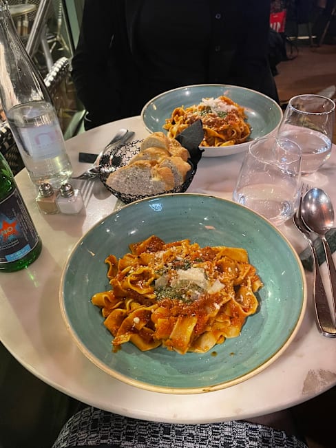 5.5/10Myself and my partner went here for our last meal in Paris before heading home. We ordered our meals and asked for tap water for the table, I had to ask 3 times to receive the two water? Our meals arrived, my partner got his meal first and I had to wait another 5 mins for mine? My partners meal (a clam pasta) was very nice however my meal (carbonara) arrived luke warm and extremely salty. I wish I had read other reviews before ordering as others have said similar about the carbonara. I told the waitress and she took my meal back to the kitchen presumably to be warmed up. I waited a further 15 mins for my meal by which time my partner had already finished so I had to eat alone. If you’re planning on visiting here, go elsewhere