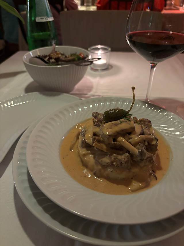 10/10There is a side of me that wants to write a review discouraging others to visit this restaurant so that we can keep it our Lisbon secret but that would be disrespectful to the most charming chef/owner we have ever met. Do not miss the opportunity to taste fabulous burrata, scrumptious garlic shrimp and a beef stroganoff that was simply perfect. You can sit inside or outside… as it was a warm evening in October we chose outside which made it definitely more enjoyable. The service is a perfect team working in harmony. You must have a reservation… we watched many hopeful diners be turned away. A lovely evening that we will remember forever.