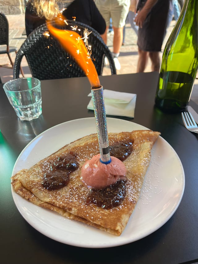 10/10The crepes were interesting and enjoyable. The service was friendly and helpful. It was a quiet street to sit outside. The violet desert crepe was regional and delicious and multiple people in our group especially enjoyed them.