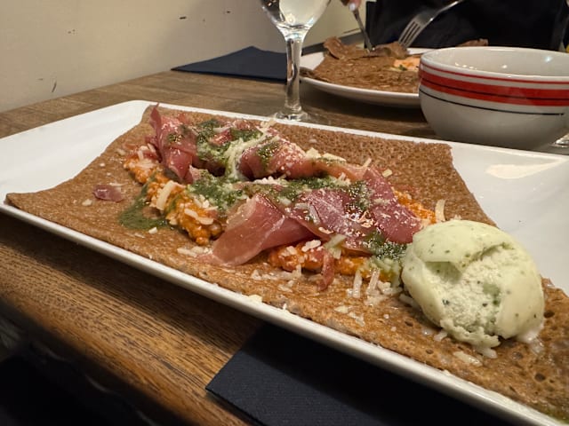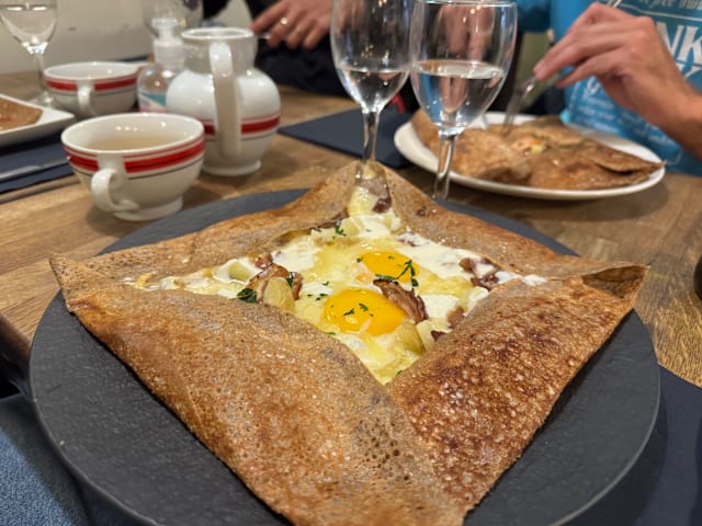 10/10Make reservations. They are often quite busy. This was our second time here, we had visited last year Toulouse. The Gallette (salty crepes) were exquisite. I had the duck and my wife had the Parmesan Serrano. Then she had the sweet fruit crepes and I had the pear crepes for desert. Nice regional white Gaillac wine complemented our meal. Will be back again.