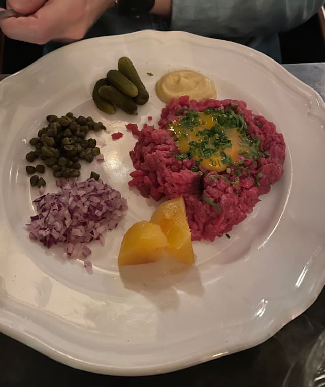 5/10Food tasted bland and lame. Cheese platter also bland. Nice interior, although very small and cramped. One of the waiters was nice but the other one was arrogant and rude. I don't know if that's a gimmick but I didn't like it one bit. He greeted us and was arrogantly on the phone at the same time with no remorse, he took my precourse plate before I was done and out it back loudly at the edge of the table, he dropped my knife and didn't pick it up and he carried other's plates above my head, making me afraid of getting my skull pierced with cutlery.