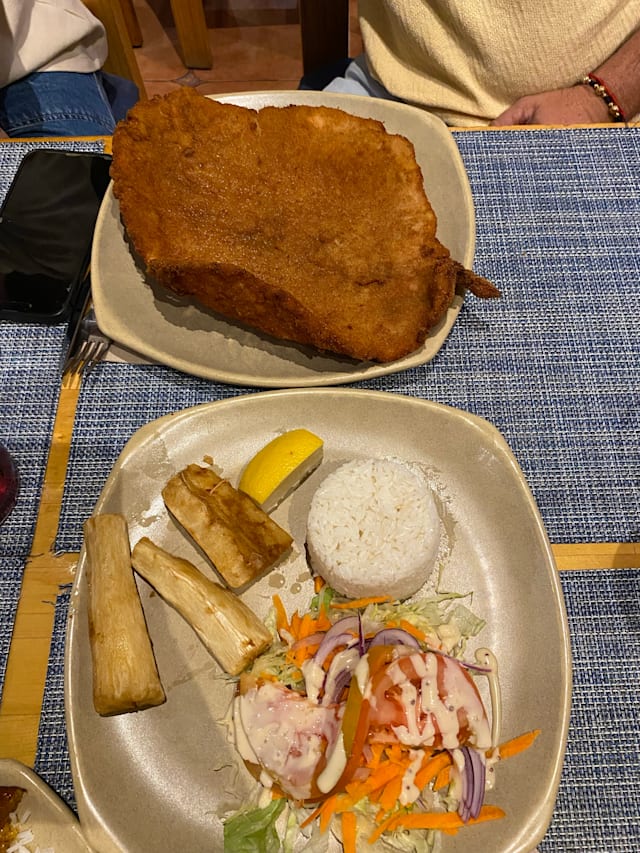 10/10Todo delicioso, buenas proporciones. Muy recomendable. l suggest to the cook that the menu of Patacon with shrimp do not mix it with tuna, the flavor of this fish is very strong, it's not a good mix of flavors. It is better to prepare the Patacón only with shrimp and a suitable sauce. Thanks