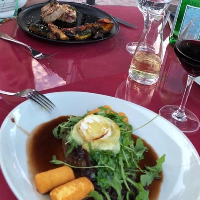 9.5/10Best restaurant in the area. Diversified menu to please everyone's palate and/or envy of the day. Excellent wines. Service might improve if done with a smile... but certainly very professional. It will remain our favorite restaurant for the time being.