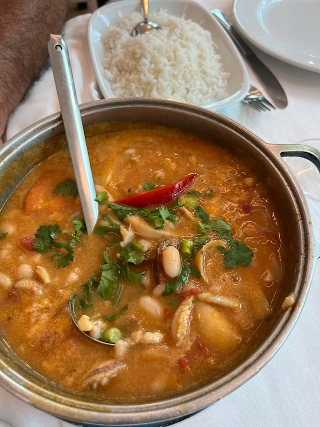 8.5/10Service was very fast but friendly. We ate traditional Portuguese dishes which were good. But the entree of roasted cod with potatoes, garlic, vegetables seemed to be on the salty side.