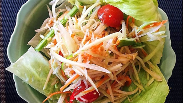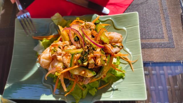 6/10The patio is very nice. The service is friendly enough. The food however is not up to standard. I ordered the green papaya salad which was fresh but too salty and too large of a portion. When I got to the bottom of the bowl , there was a lot of leftover dressing. For the main course I asked for a vegetarian pad thai, which was not offered as an option in the menu. I did get a dish without any animal products, but the portion of noodles was far to big for the tiny portion of vegetables. It is unacceptable not to have enough vegetables in a Thai restaurant. We will not return.