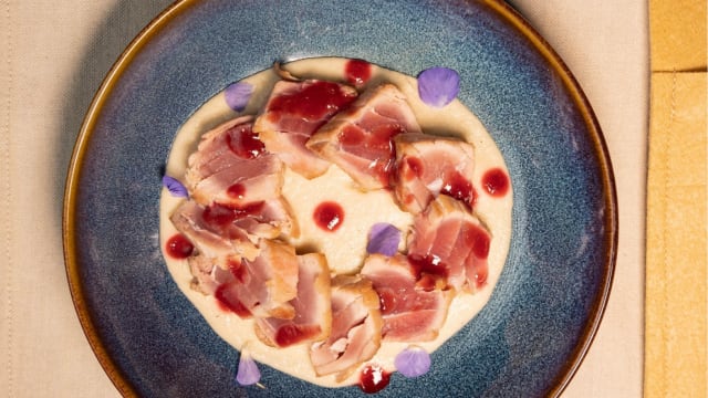 - Tataki di scottona demiglace al timo e verdure di accompagnamento