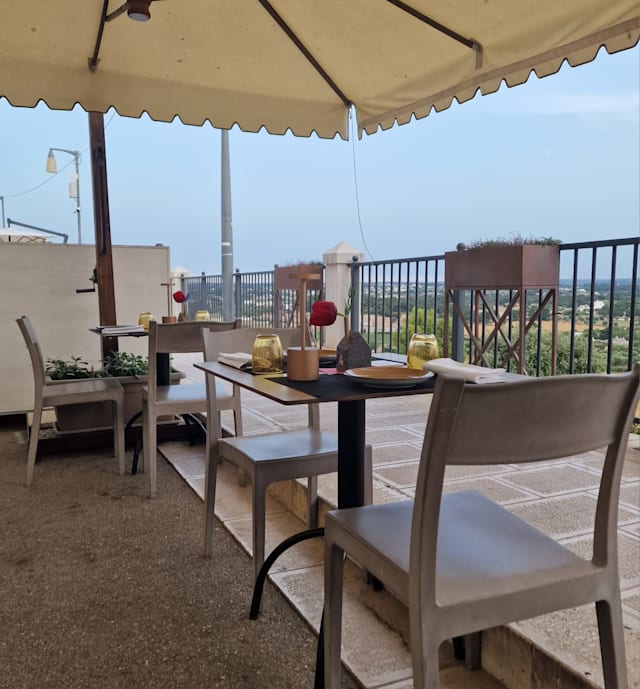10/10The tables set out overlooking the view was lovely. The waiter suggested local food and wine which were excellent and was helpful, friendly and efficient , even allowing me to practise my Italian! A great way to spend the afternoon and the best food we have had in Puglia.