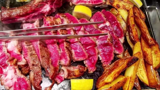 - Costata di manzo servita su pietra rovente con contorno di patate novelle (al kg)