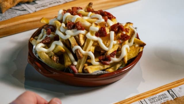 Pão brioche, hambúrguer, onions, bacon, mozzarella, rúcula e molho da casa.