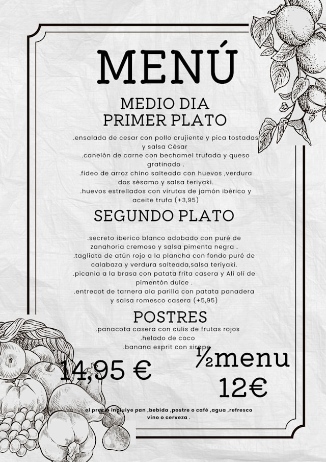 MediterraneanBarbecueBurgerCodCroquettesDim sumRiceTacosTartar steakBirthdayBookable terraceFrom marketGood for a business lunchLunchOutdoor diningRaw foodSeminarTrendyWine barWinter terraceWith friendsVegetarian dishesWifi
