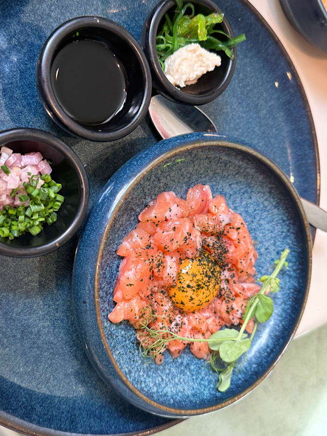 9.5/10Great quality food and very friendly prompt service. We had tuna tartare, octopus, shrimp taco, sea bass and a chocolate mousse. All were excellent. With a bottle of wine plus an extra glass each, the bill came to around €110. Good value for the quality.