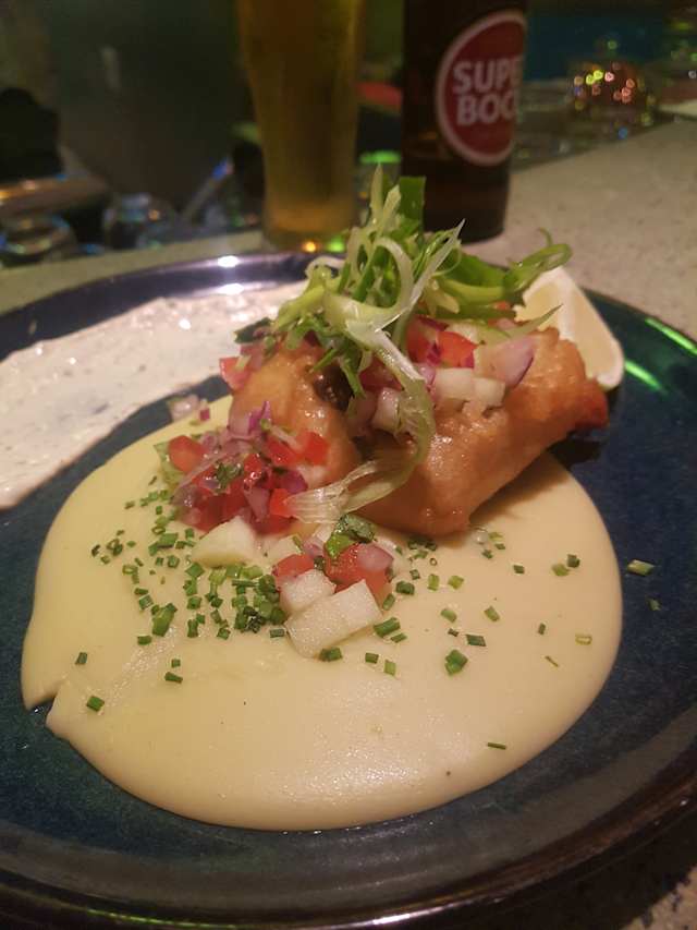- Taco de camarão com guacamole e chips de salsifis 1und