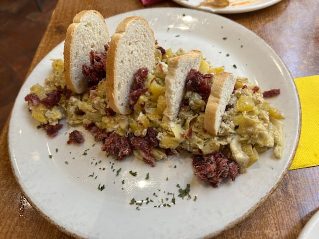 5.5/10We have been seated in the back room very far from the main one on the street- it’s behind the kitchen and feels like we were being punished for having booked a table instead of waiting in the queue outside and being counted of the happy few who get the good seating. The back room is reserved for the tourists groups and very loud - you are served very or too quickly for the food to feel fresh enough or « made with love » it felt like the food factory for tourists. The waiter kept asking every five minutes if we were done ( it took us less than an hour to eat, while we were expecting a good time and slow night with a good wine) … not happy with the experience - an advice : don’t book your table, go wait on the line and wish for the best!